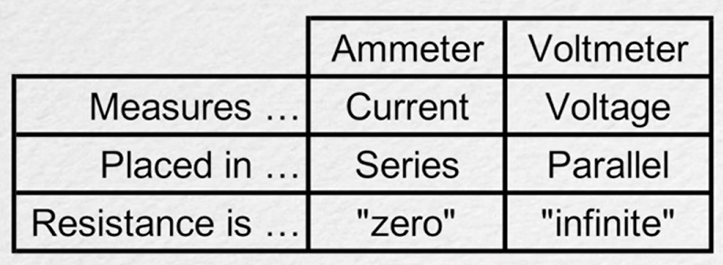 The differences and simplification of the characteristics of the Ammeter and Voltmeter. Courtesy of Flipping Physics.