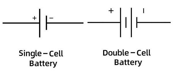 The electric symbols for single-cell and double-cell batteries. Courtesy of NextPCB.