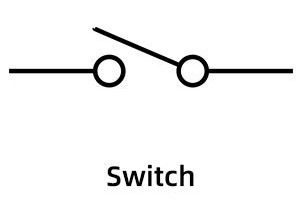 # Switch: An electrical component that only serves to close or open a circuit. When the switch is shut, it closes the circuit, and when it is open, then the circuit is open as well, resulting in all of the aforementioned effects (see above definitions). Switches are represented using the following symbol: