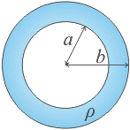 An example uniformly charged spherical shell, with a full radius of b and an internal radius of a.