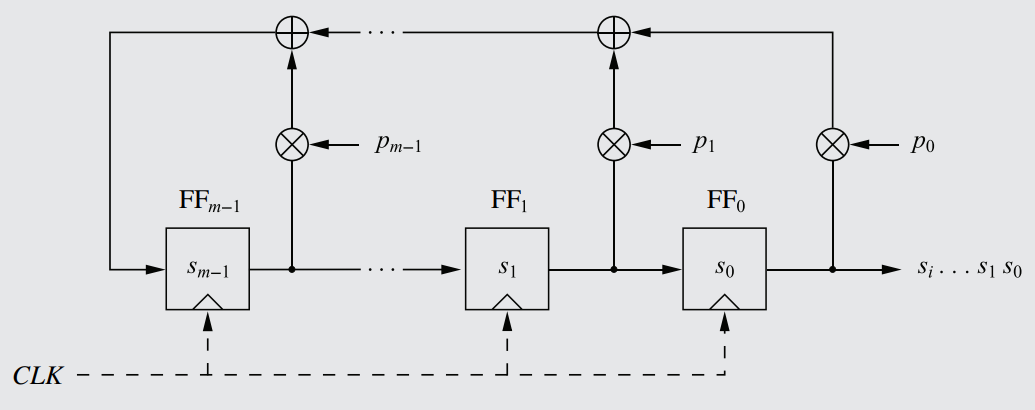 A generalized LFSR, with every possible link between a flip-flop and the feedback path having a multiplier function, serving as the 'switch' determining whether that flip-flop is included as a part of the XOR operation.