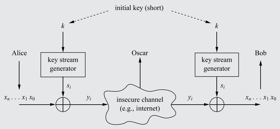 Utilizing the definition of the encryption function of a stream cipher (Rule 25), the keystream at position i can be isolated:i β β€2m