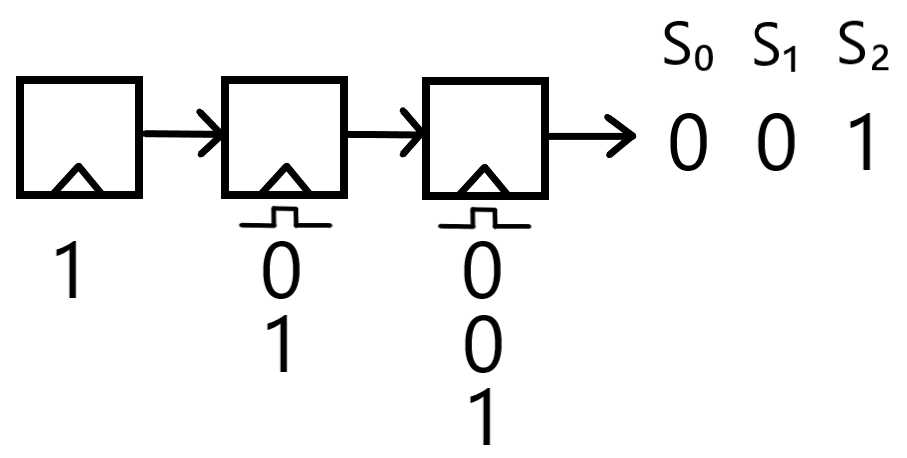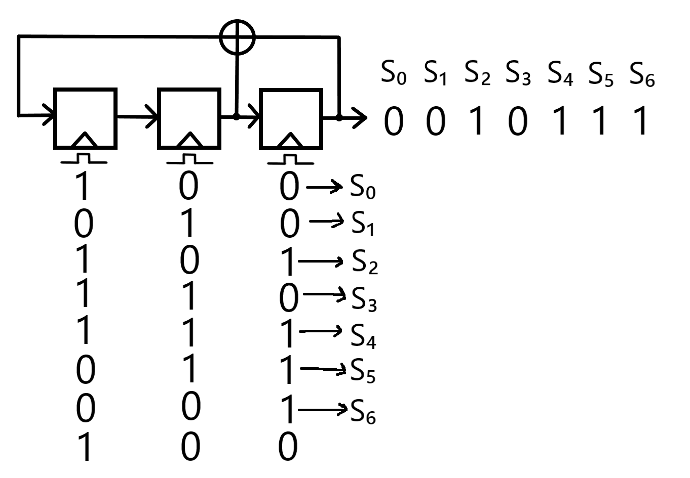 A Linear Feedback Shift Register, complete with three flip-flops and a full period of values, which compose one complete keystream.