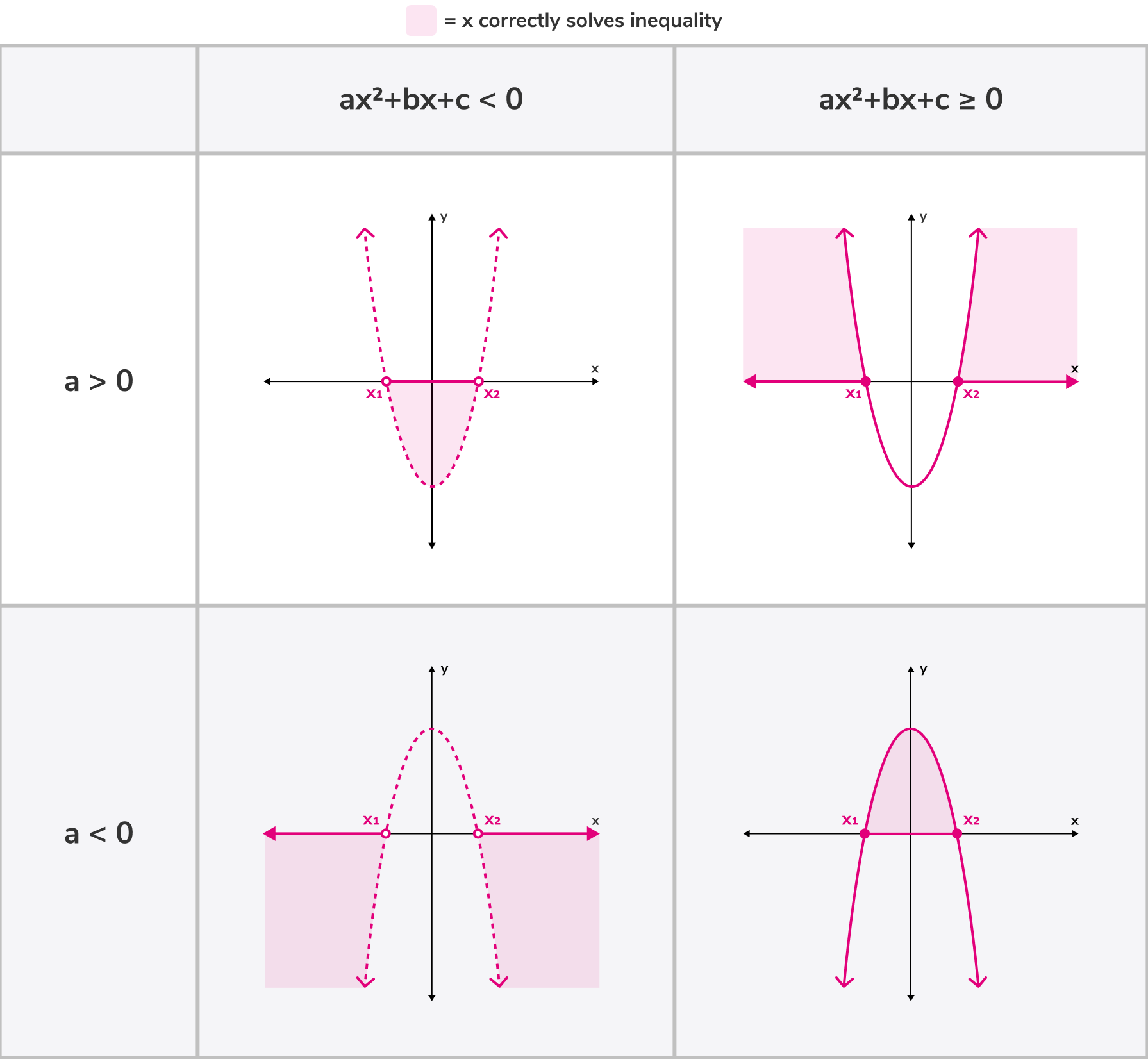 Decreasing Domains for wave parabolas have > greater than symbols, [ 2 > x, x > -2 ]. Increasing domains use lesser than symbols, [ -3 < x, x < 4 ], Range is below. For normal y = x² parabolas, Domain = all real #s.