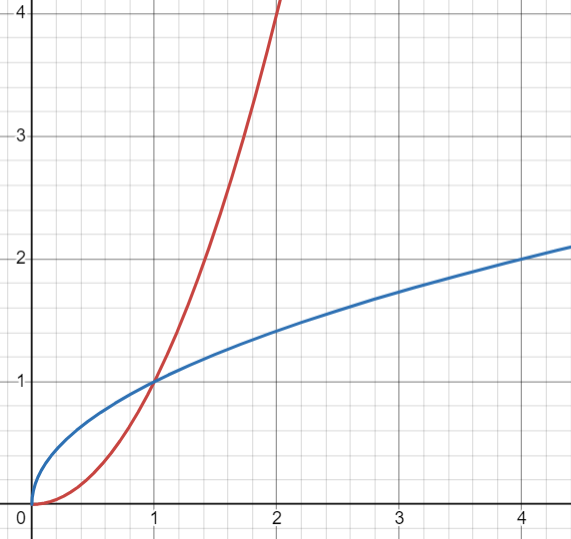 The restricted graph of y = x² and √x. Functions graphed on Desmos.