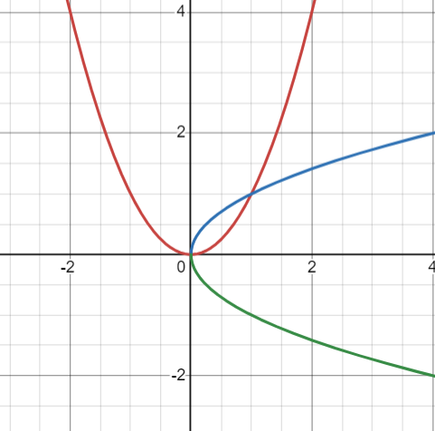 The graphs of x², √x, and -√x. Functions graphed on Desmos.