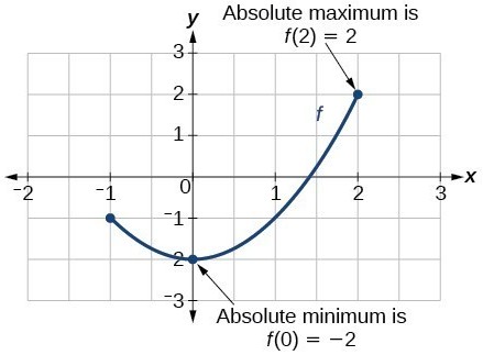 The Absolute Maximum and Absolute Minimum values for a restricted portion of a function. Courtesy of Lumen Learning.